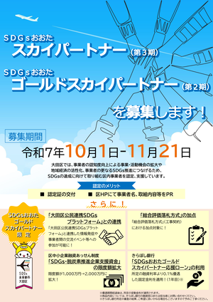 10月1日から11月21日まで「第3期SDGsおおたスカイパートナー」と「第2期SDGsおおたゴールドスカイパートナー」を募集します。