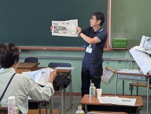 訓練内容としては、今年度改定された学校が避難所として使用可能か判断する避難所安全確認チェックシートの利用方法について理解を深める訓練。
