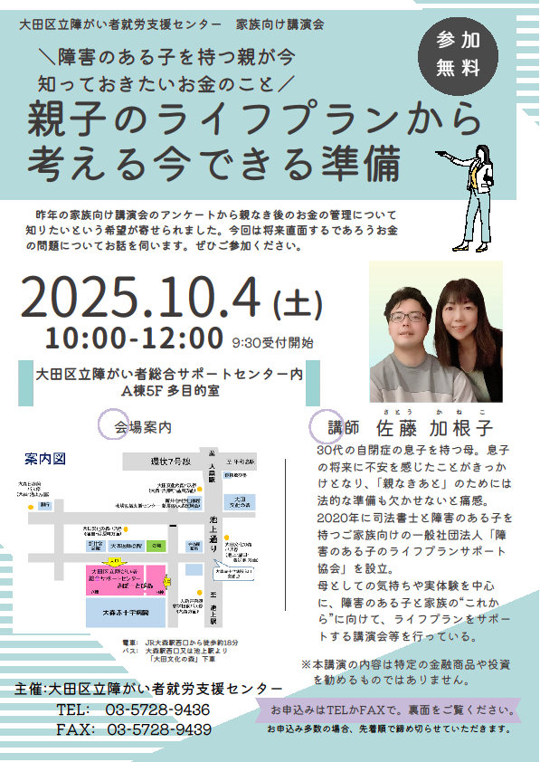 10月4日(土曜日)開催の「家族向け講演会」のチラシがお手元に届いた方へ