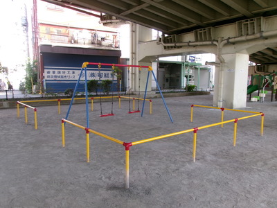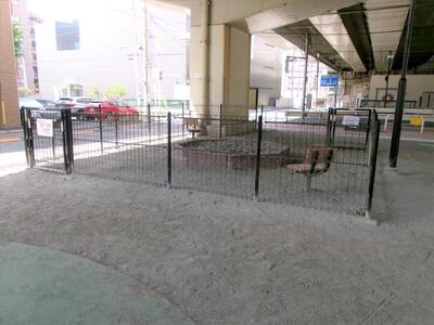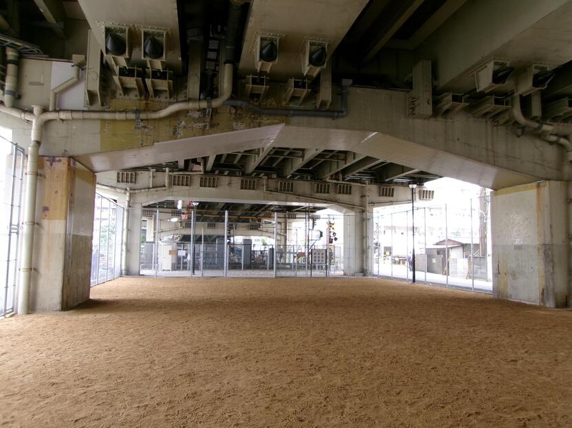 注意事項:ボールを高く蹴り上げたりしないでください。高架橋の桁下に挟まり取れなくなります。また、バットやラケットなどの使用は禁止しています。
